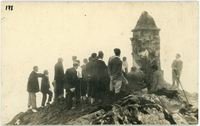 Ramón Gortázar, montañero e ingeniero de Bilbao, lo mataron a tiros en Marruecos el 1 de mayo de 1920, cuando trabajaba en la construcción del ferrocarril de Túnez a Fez. Este monumento, dedicado por el Club Deportivo de Bilbao, se inauguró en junio de 1920. La lápida, también fue dedicada por este Club. Antxon Bandrés era presidente de la Federación Vasco-Navarra de Alpinismo y socio fundador del club. A su lado, Altzeta (Carlos Linazasoro), activo propagandista del PNV y del montañismo.